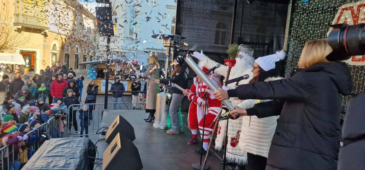 Z otroki so zadnje sekunde do novega leta odštevali županja Ptuja Nuška Gajšek in podžupanja Nevia Potočnik Plemeniti, škrata in odgovorna urednica Radia Ptuj Simona Pušnik v družbi Dedka Mraza.