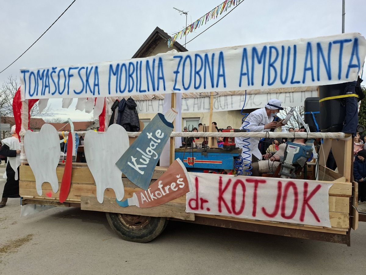 Udeleženci povorke so se odpravili od šole proti centru kraja in zaključili pri Kulturnem domu. Žirijo, ki je skrbela za ocenjevanje mask, je najbolj navdušila pustna skupina Tomašofska mobilna zobna ambulanta, ki je za prvo mesto prejela 400 evrov.