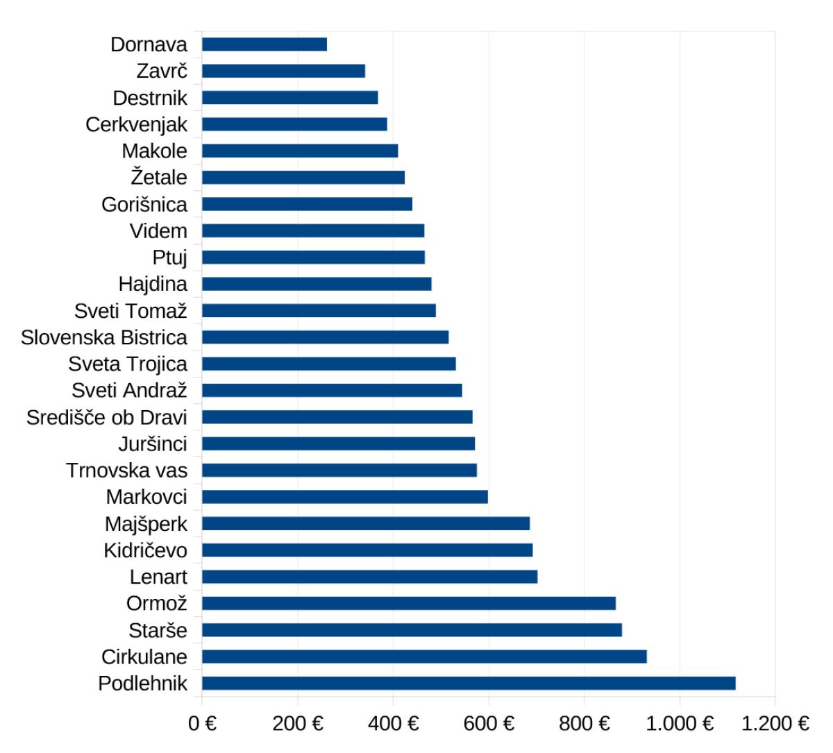Po višini investicijskih odhodkov v obravnavanem obdobju 2021–2024 izstopa občina Podlehnik, ki je v tem obdobju za različne naložbe namenila 1.117 evrov na občana, sledijo Cirkulane z 931 evri ter Starše z 879 evri.