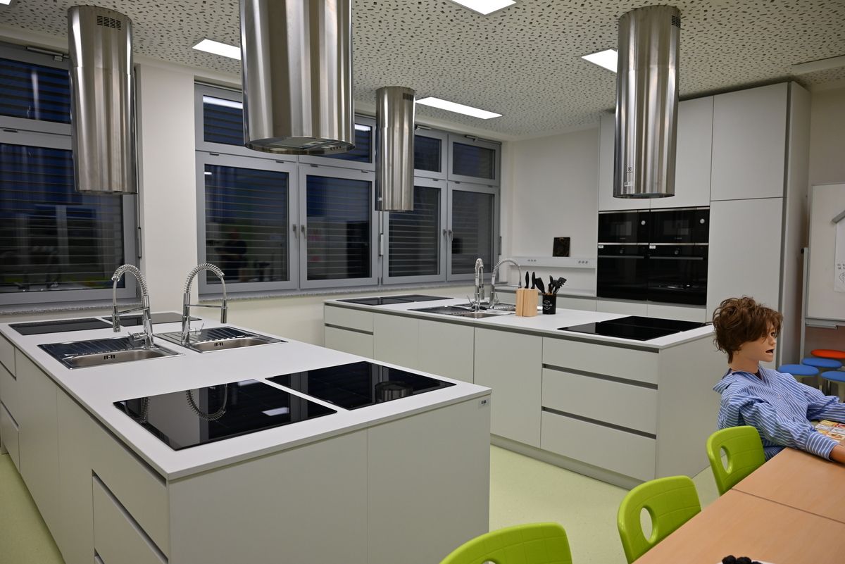 Del je namenjen jedilnici, prizidek pa obsega 900 kvadratnih metrov, v katerih so uredili tri specializirane učilnice, tri kabinete, učilnico za pripravo hrane v programu zdravstvene nege ter dve splošni učilnici. Poleg tega so pridobili še dodatne sanitarne prostore in pralnico.