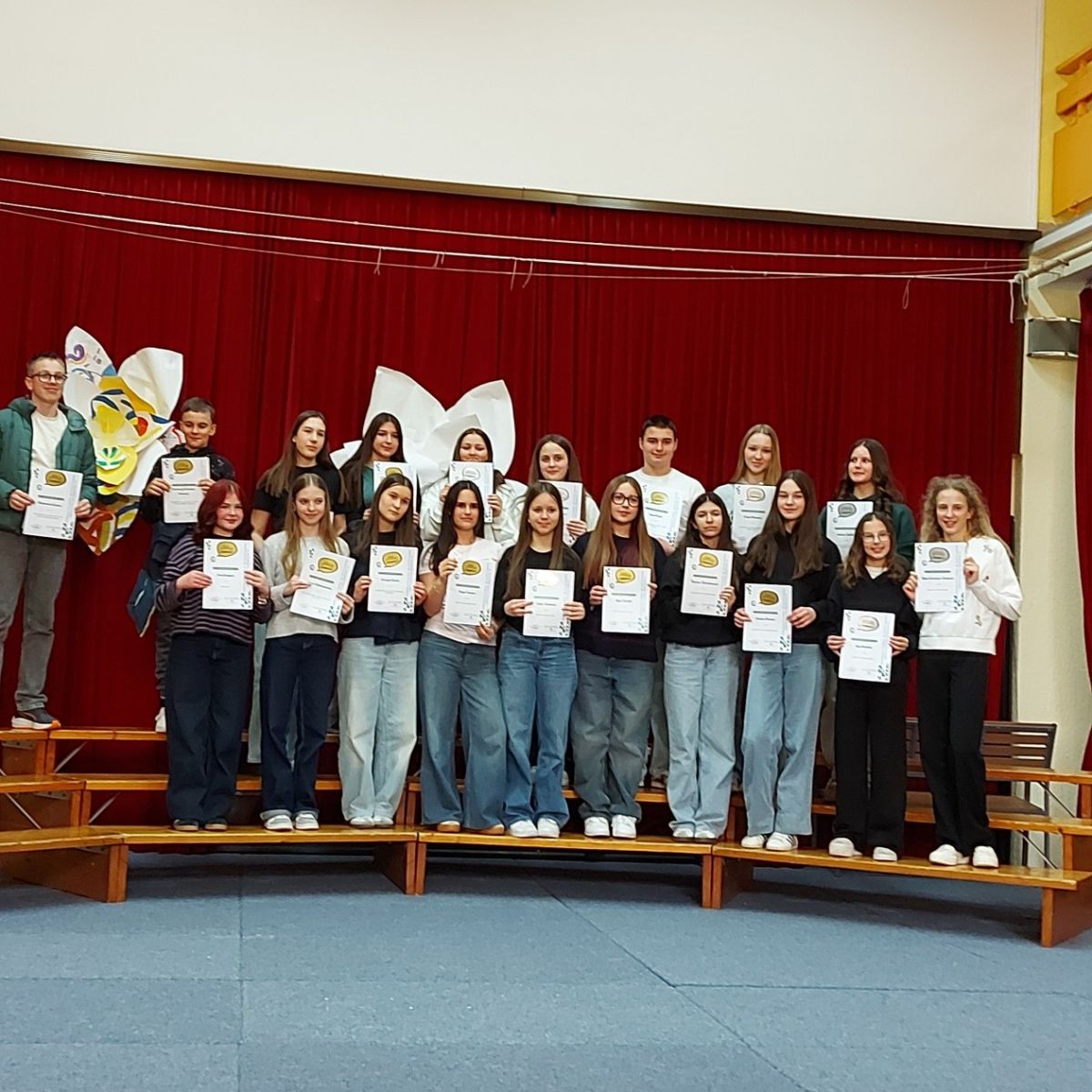 Srebrna priznanja so si prislužili: Lia Predikaka in Taja Zajšek za nalogo Skrita »cena« energijske pijače iz pločevink, Ajša Korošec Vidovič in Aja Kmetec za nalogo Vloga ličil v življenju mladih ter Lina Muršec in Antea Šoštar za nalogo Potovanje po turističnih znamenitostih občine Kidričevo (uvrstili sta se tudi na državno tekmovanje).