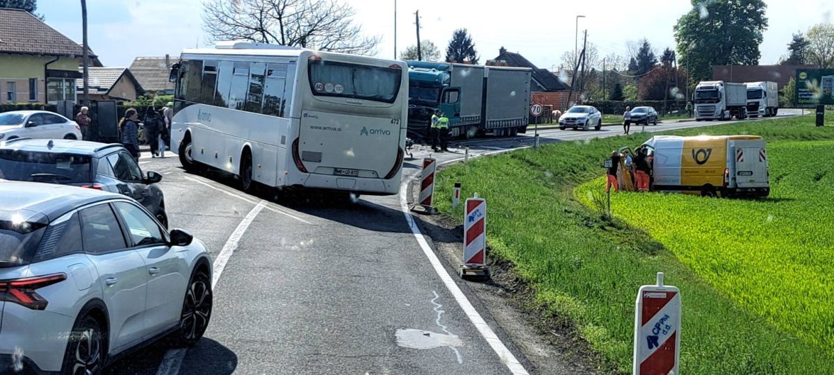 Previdno na cesti: v Gorišnici trčila tovornjak in kombi