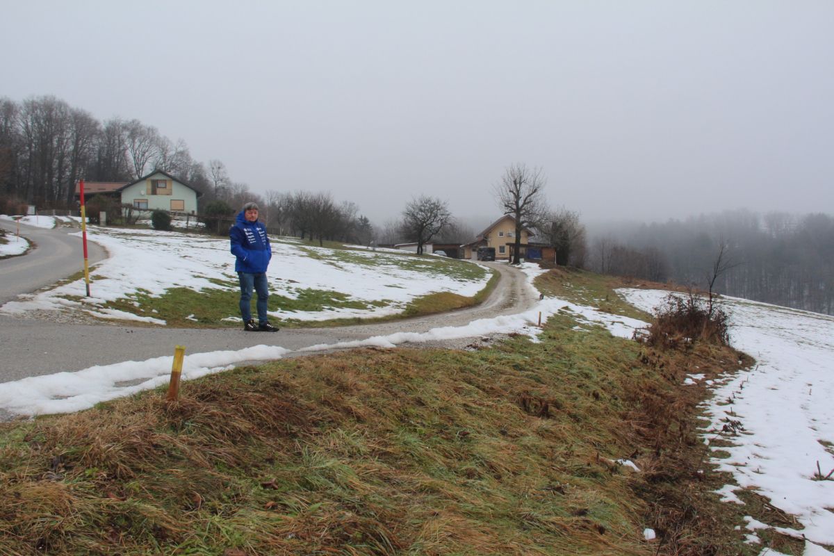 A še zdaleč ni (bilo) tako. Ne plazi samo lokalno na Tašnerjevem posestvu in v neposredni bližini, ampak drsi celotno pobočje od vrha griča navzdol! Najvišje je cesta, pod njo dve hiši, pod njima pa 15 hektarjev veliko državno zemljišče, ki ga upravlja sklad. Njivo ima v najemu kmetovalec iz soseščine.