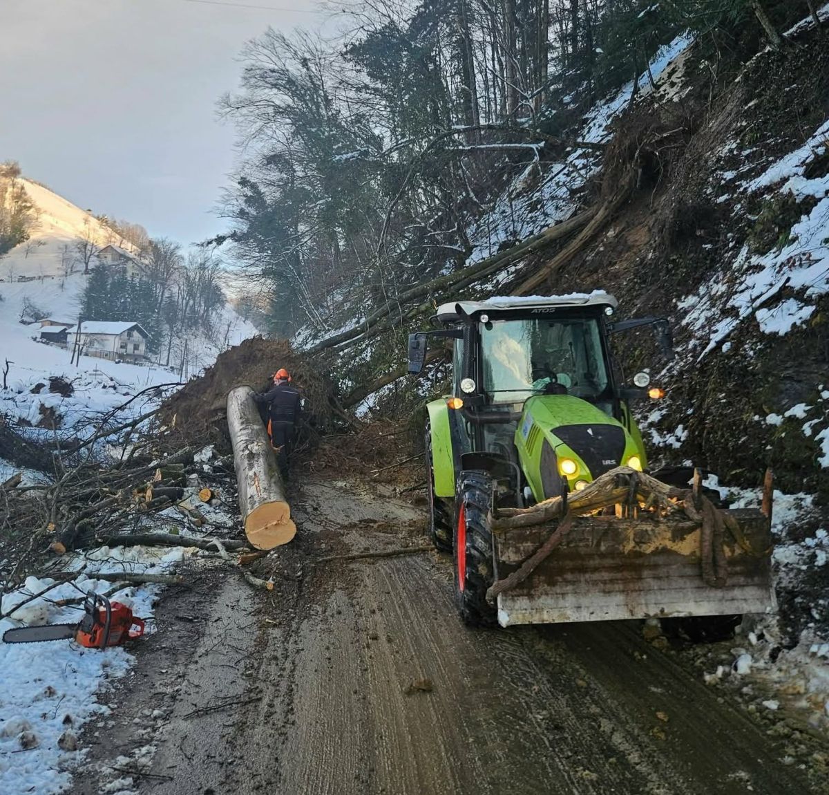 Polomljene veje in podrta drevesa ogrožajo varnost prometa in ljudi. Skupna občinska uprava zato lastnike gozdov ob cestah poziva k čimprejšnjemu ukrepanju.