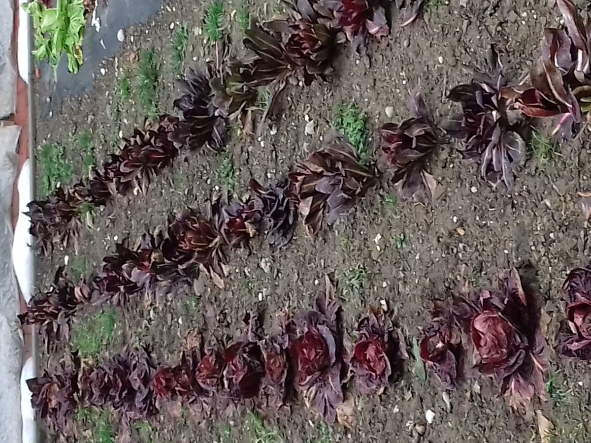 Pri letnih sortah radiča je situacija taka. Najslabše nizke temperatur prenaša sladkorni radiči, štrucarji, kot jim rečete. Te je treba pojesti takoj za endivijo. A zagotovo mu ne grozi hujšega nekje do decembra ali celo dalj. Najbolje prenašajo mraz zelenolistne okrogle sorte v tipu »palla bianca«, kot je na primer bianca invernale. Tem zdaj še ni sile, ne bodo pa prenesli veliko skokov temperatur, menjave toplih in hladnih obdobij. Veliko nizkih temperatur prenesejo tudi rdečelistni, glavnati letni radiči v tipu »palla rossa«. Pa še tukaj je nekaj razlike. Kot ste opazili, se običajno pri nakupu semenskih vrečic ob imenu palla rossa pojavljajo še številke. O njih sem že pisala, nizke pomenijo zgodnejše sorte, visoke poznejše. Slednje, torej poznejše sorte, tudi bolje prenašajo mraz. Zdaj za te sorte še ni nobene nevarnosti, saj prenesejo zelo veliko. Vem, da je prijetneje, če je vsak dan v skledi nekaj drugega. A preko narave ne moremo in mraz seveda je sovražnik letnih vrtnin. Zato se je treba držati tega vrstnega reda spravila solatnic z vrta. Torej, te pospravimo za »štrucarji«, pustimo pa še »zelene«, okrogle sorte. Letnim sortam radiča NE REŽEMO listov.